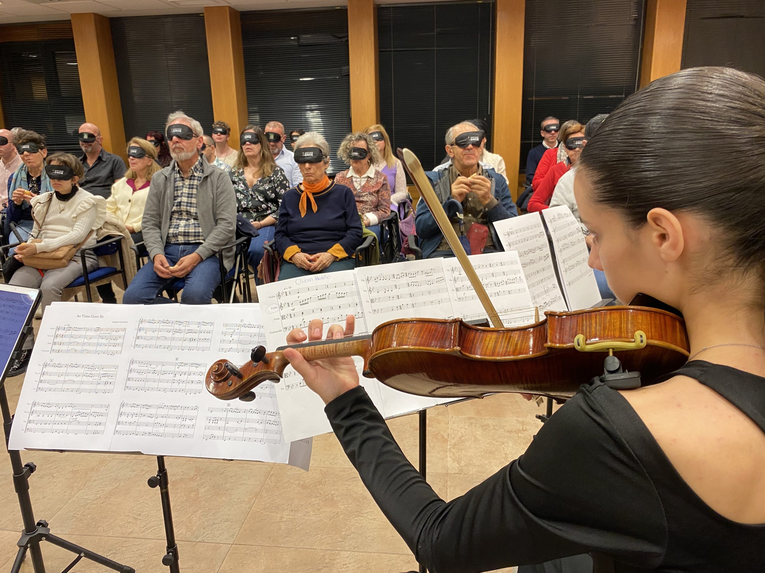 During the session, participants engaged their senses in the union of food and music—those who were not blindfolded did so wearing blindfolds—with a performance by the string quartet from the Cáceres Conservatory. In this way, the audience was able to immerse themselves in an experience where music became flavor and flavor became emotion. Each note evoked a memory, and each aroma opened a door to the imagination, in a sensory dialogue that transcends sight to celebrate human diversity.